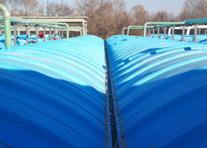 一、改變了傳統(tǒng)玻璃鋼封閉結(jié)構(gòu),改進(jìn)了玻璃鋼封閉罩的密封技術(shù),根治了異味氣體和VOCs的散發(fā)。封閉罩采用模具法制作一次成型,一是提高了整體強(qiáng)度,尤其是跨度大于7米以上的封閉罩,使用效果良好。二是設(shè)計(jì)封閉罩結(jié)構(gòu)時(shí)加強(qiáng)了耐太陽照射老化的表面層,增加耐用性,壽命可達(dá)到15年以上。三是克服了混凝土施工帶來的各結(jié)合部位的非標(biāo)準(zhǔn)性的困難,既使封閉罩和池子之間的密封達(dá)到零泄露,又能保證拆裝方便,為今后對(duì)水處理設(shè)備和填料的維修、更換提供了方便。